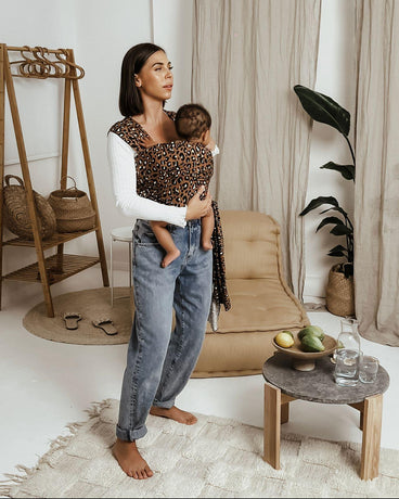 - Stretchy wrap sling. My trusty Calin Bleu stretchy wrap is wonderful when carrying a newborn. It helps baby transition from womb to world, feeling close & held